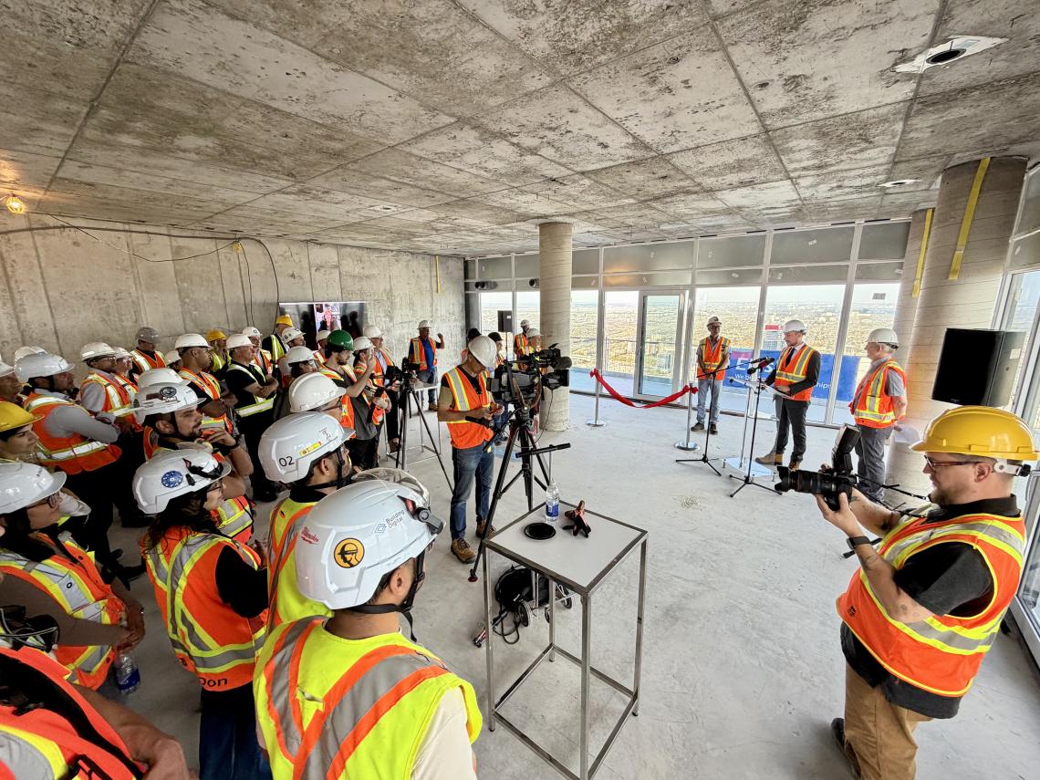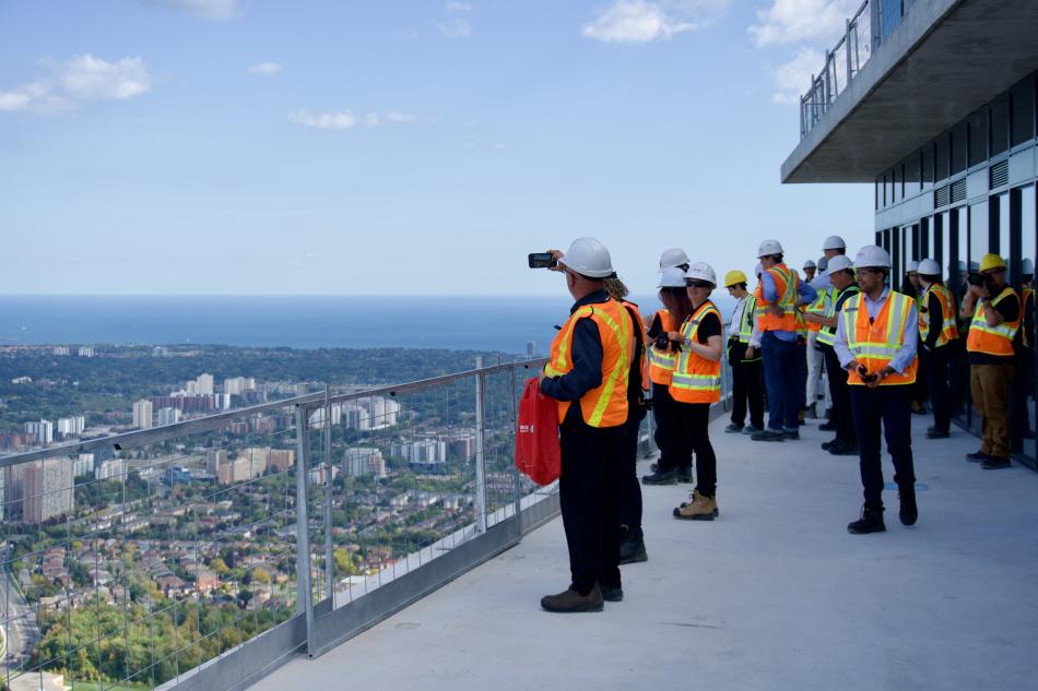 The milestone event, held on the tower’s 77th floor, offered breathtaking views of Mississauga’s City Centre and the Greater Toronto Area. Among those in attendance were members of the project team, city officials, and community leaders who gathered to mark this significant achievement.