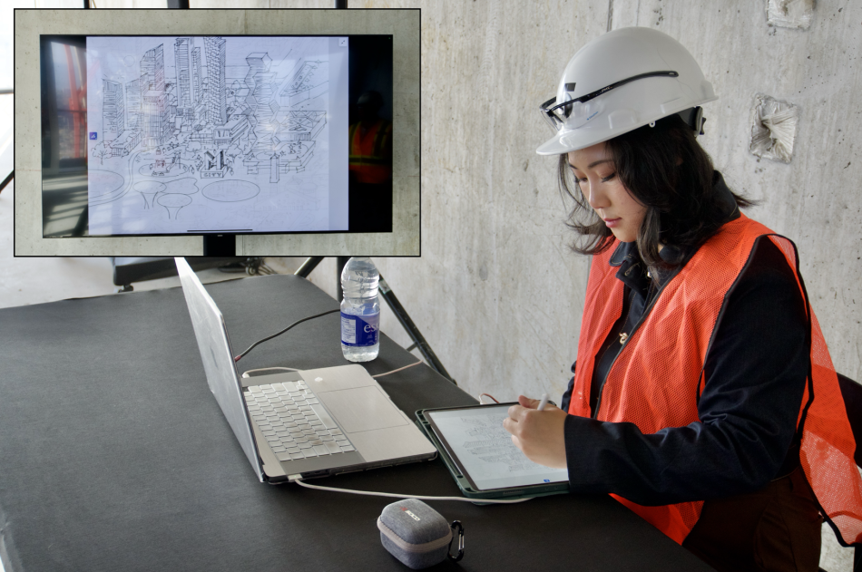 Adding a creative touch to the celebration, artist Kathleen Fu created a live illustration during the event — a piece that will be permanently installed in M3’s lobby once the building is complete.