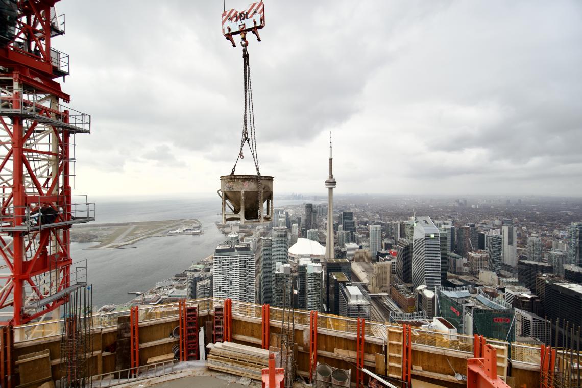 To celebrate the construction milestone, Urbanize Toronto joined a special onsite tour, ascending 100 storeys above Downtown Toronto for an exclusive look at the progress atop the rapidly rising supertall tower.