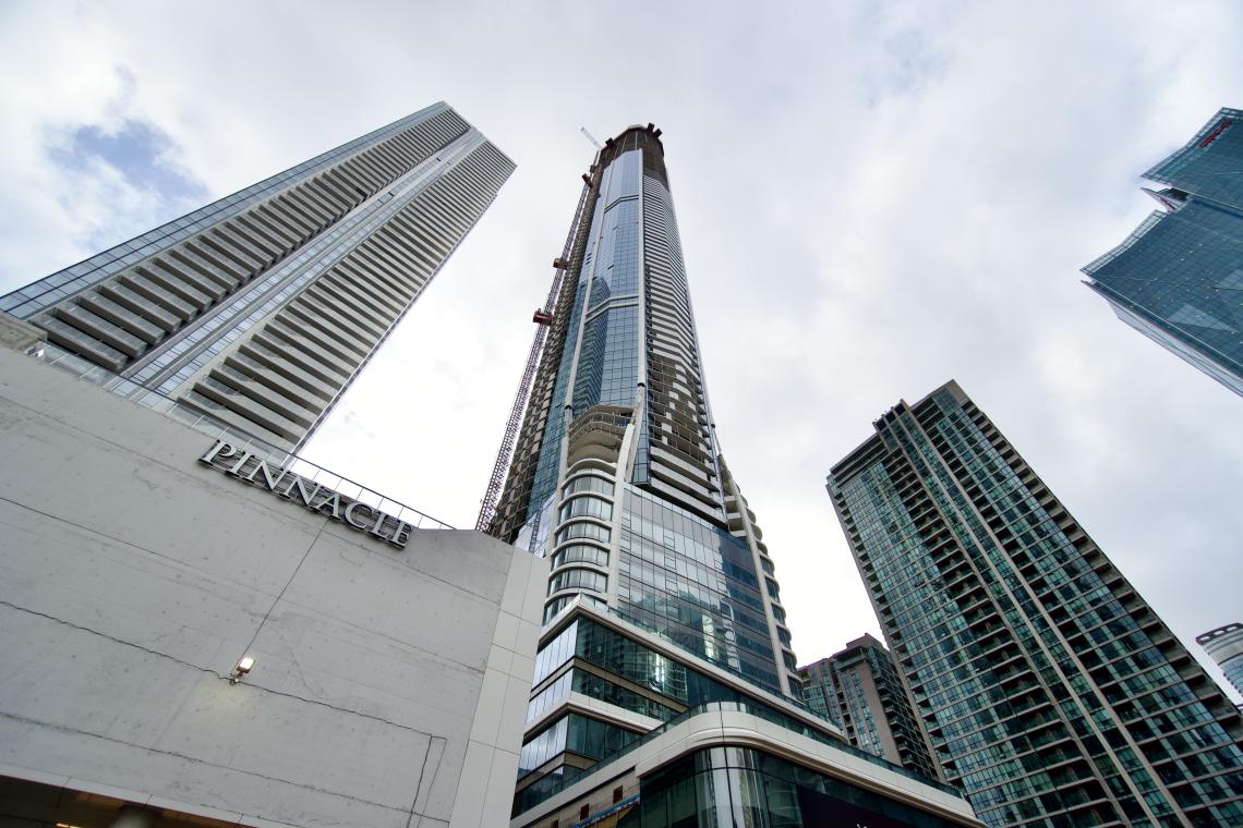 SkyTower at Pinnacle One Yonge has officially reached its 100th storey, becoming the first building in Canada to do so — and marking a major milestone for what will soon be the country’s tallest building.